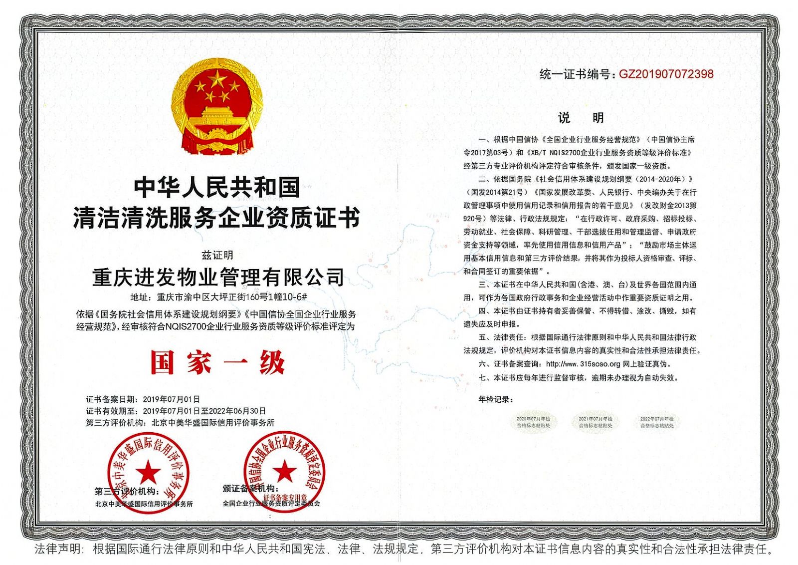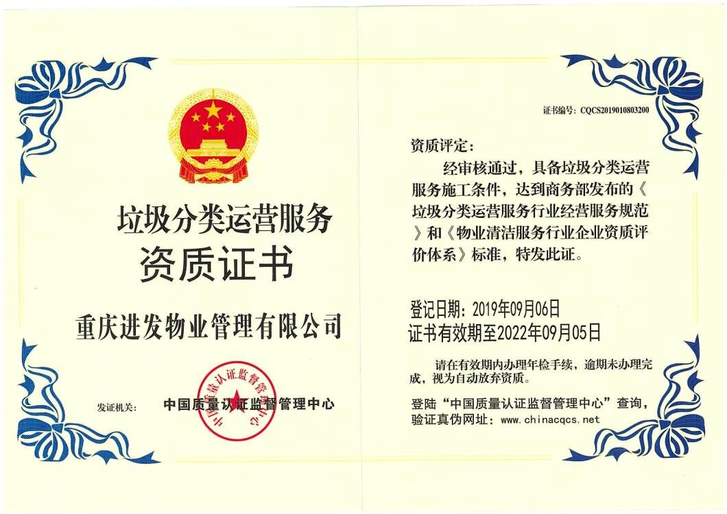 ? ? 公司多年來,為打造潔凈美麗的人居生活環(huán)境,專注、專心、專業(yè)不懈努力著。現(xiàn)已成立了三家分公司,職工上千余人,并擁有了一支技術(shù)力量過硬、管理經(jīng)驗成熟的精英團隊。在業(yè)務(wù)規(guī)模方面,物業(yè)管理服務(wù)規(guī)模達到150萬平方米,城市環(huán)境衛(wèi)生管理服務(wù)規(guī)模達到600萬平方米;在技術(shù)支持方面,已取得多項技術(shù)專利、執(zhí)業(yè)資質(zhì)與榮譽稱號,并成為重慶市物業(yè)協(xié)會會員單位、重慶市環(huán)境衛(wèi)生協(xié)會理事單位;在設(shè)備方面,自購了60余臺多種功能的特種設(shè)備車輛用于城市道路環(huán)境衛(wèi)生管理服務(wù),現(xiàn)已發(fā)展成為一家具有資金雄厚、技術(shù)先進、設(shè)備齊全、環(huán)境衛(wèi)生管理服務(wù)專業(yè)的民營企業(yè)。