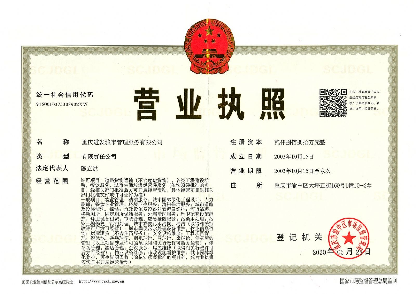 ? ? 重慶進發(fā)城市管理服務(wù)有限公司(原名重慶進發(fā)物業(yè)管理有限公司),成立于2003年10月,注冊資金2880萬元,位于重慶市渝中區(qū)大坪正街160號10-6,主要從事住宅、商住樓、寫字樓、商業(yè)、政府辦公樓、學校等各類型大樓的物業(yè)管理服務(wù)以及城市道路環(huán)境衛(wèi)生管理服務(wù)。